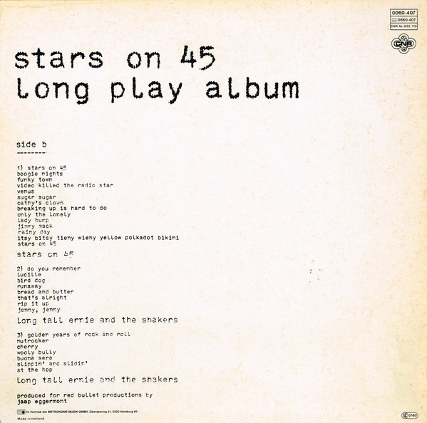 € 6.50 Media: Very Good Plus (VG+)Hoes: Very Good Plus (VG+)Stars On 45 – Long Play Album (LP, Album)