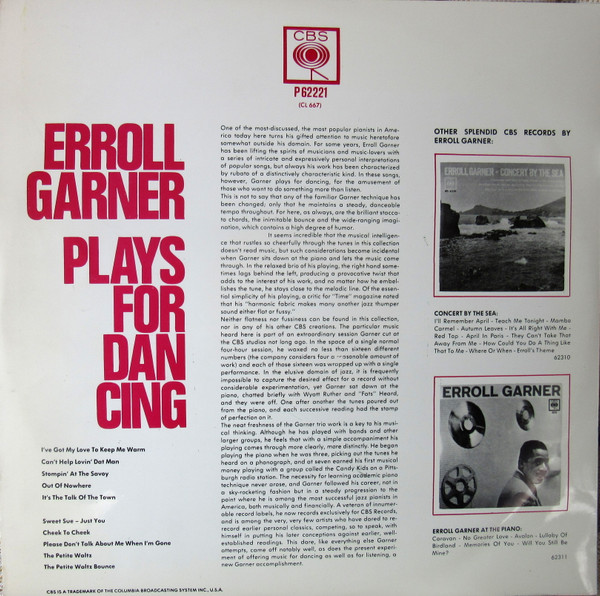 € 5.50 Media: Very Good Plus (VG+)Hoes: Very Good Plus (VG+)Erroll Garner – Erroll Garner Plays For Dancing (LP, Mono)