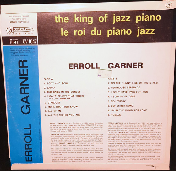 € 8.50 Media: Very Good Plus (VG+)Hoes: Good (G)Erroll Garner – Errol Garner (LP, Comp)
