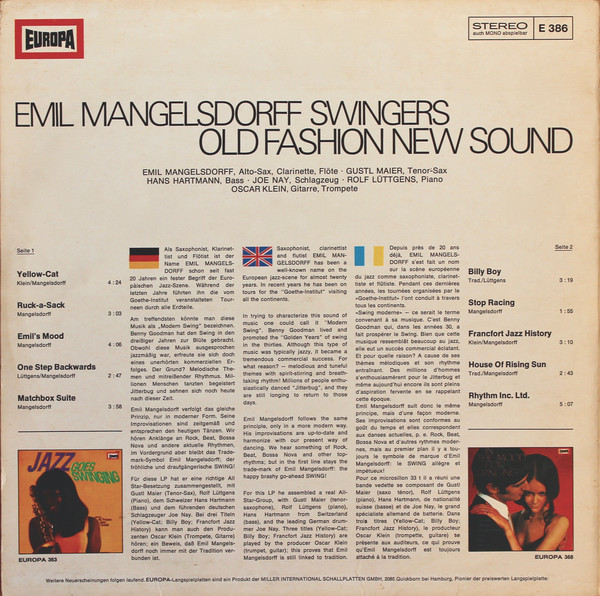 € 6.50 Media: Very Good Plus (VG+)Hoes: Very Good (VG)Emil Mangelsdorff Swingers – Old Fashion New Sound (LP, Album)