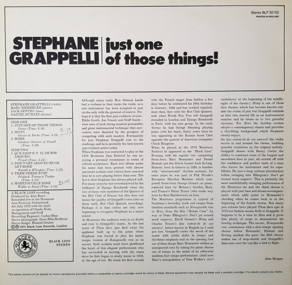 Stéphane Grappelli – Just One Of Those Things! (LP, Album)