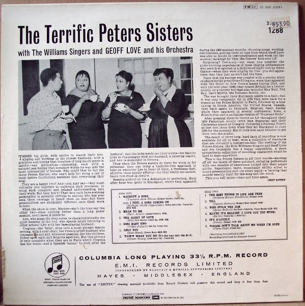 Peters Sisters Feat Virginia Vee With Geoff Love & His Orchestra With The Williams Singers – The Terrific Peters Sisters (LP, Album, RE)