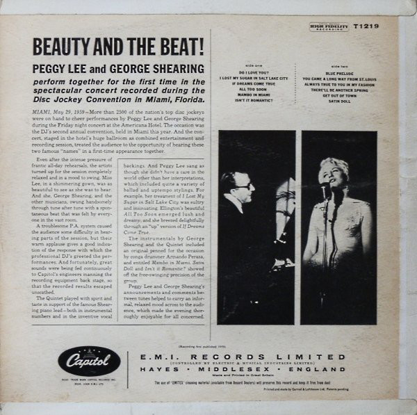 Peggy Lee / George Shearing – Beauty And The Beat (LP, Album, RE)