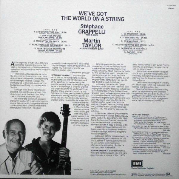 Stéphane Grappelli & Martin Taylor – We’ve Got The World On A String (LP, Album, Dig)