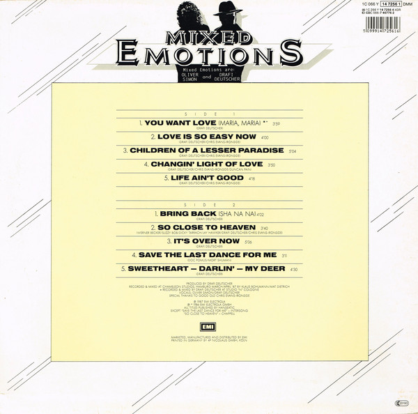 € 7.50 Media: Near Mint (NM or M-)Hoes: Very Good Plus (VG+)Mixed Emotions – You Want Love (Maria, Maria…) (Special Re-Emotion-Mix) (12″, Maxi)