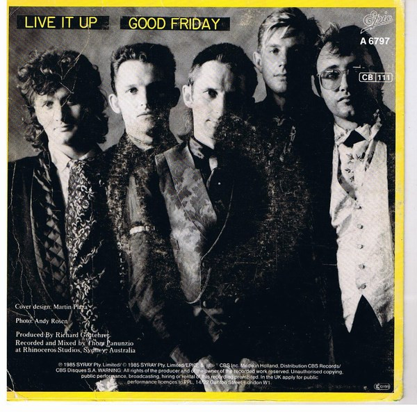 € 7.00 Media: Very Good Plus (VG+)Hoes: Very Good (VG)Mental As Anything – Live It Up (7″, Single, RE)