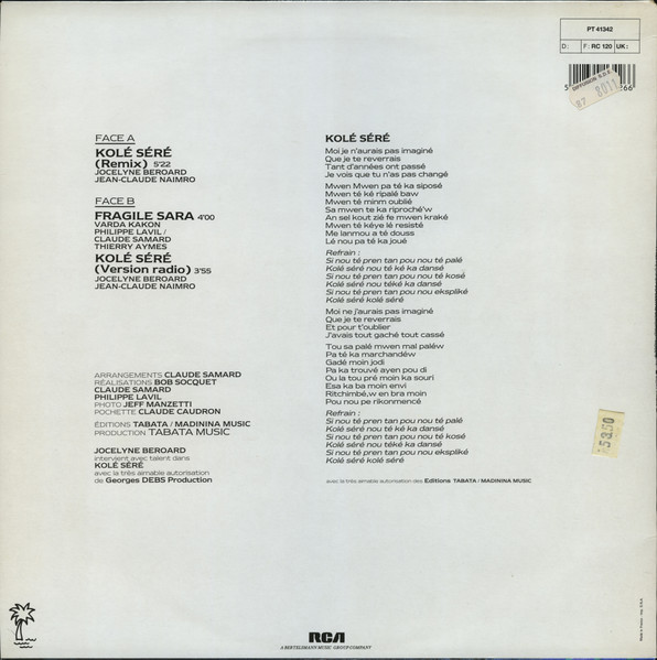 € 4.50 Media: Very Good (VG)Hoes: Good Plus (G+)Philippe Lavil & Jocelyne Beroard – Kolé Séré (12″, Maxi)