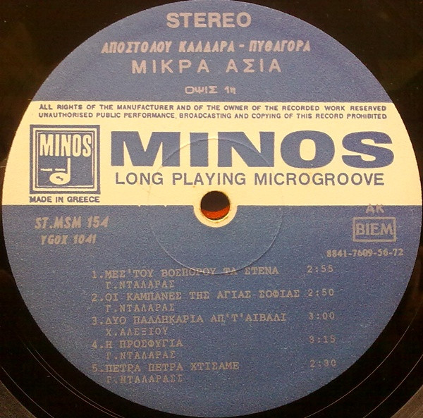 Απόστολος Καλδάρας – Πυθαγόρας – Γιώργος Νταλάρας – Χάρις Αλεξίου – Μικρά Ασία (LP, Album)