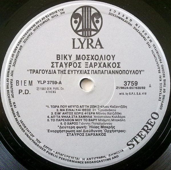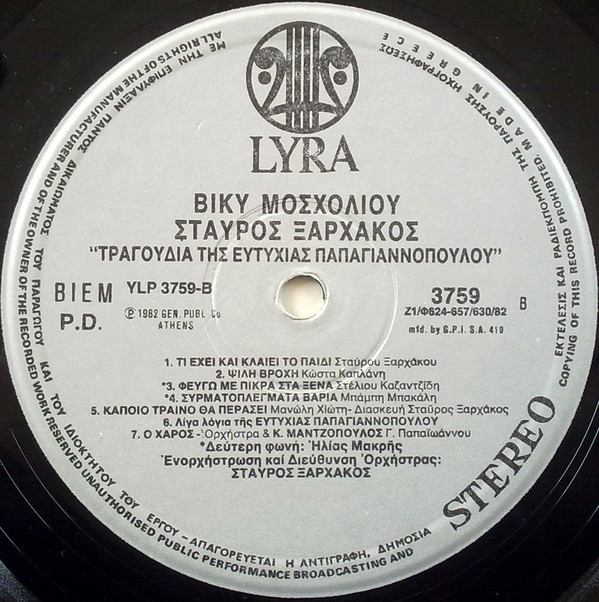 Βίκυ Μοσχολιού – Σταύρος Ξαρχάκος – Αφιέρωμα – Τραγούδια Της Ευτυχίας Παπαγιαννοπούλου (LP, Album)
