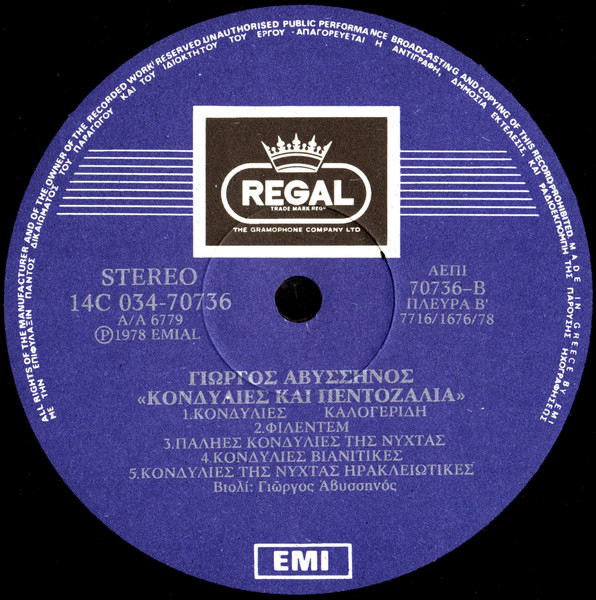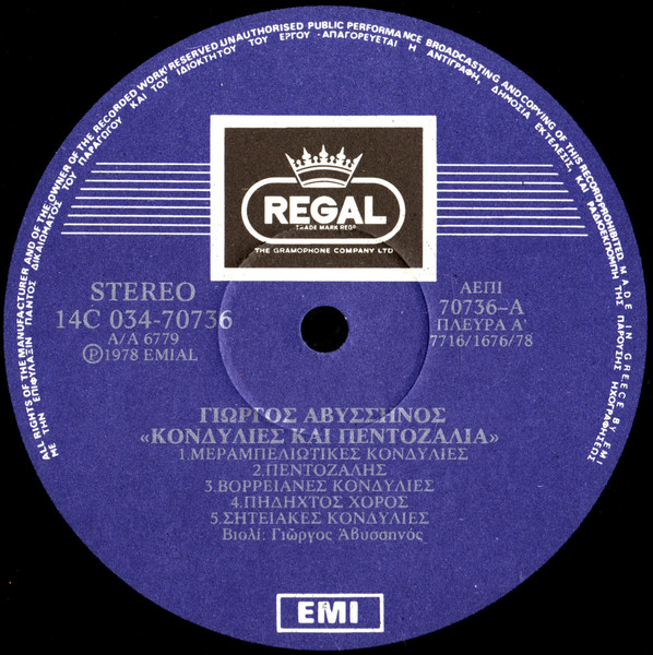 Γιώργος Αβυσσηνός = Γιώργος Αβυσσηνός – Κονδυλιές Και Πεντοζάλια = Kondilies Ke Pentozalia (LP, Album)