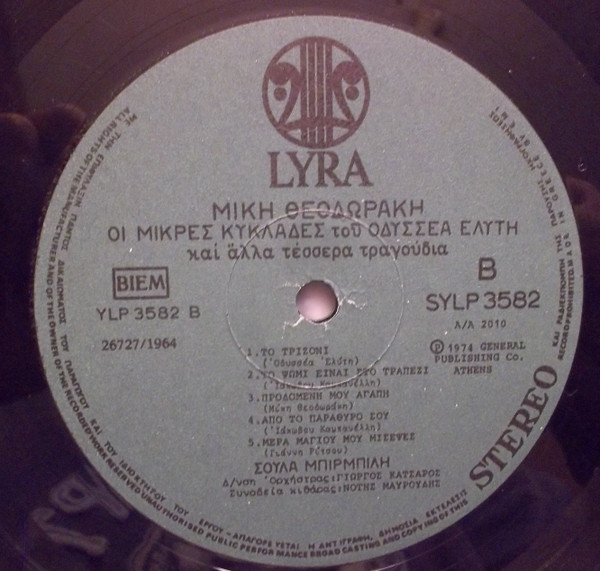 Θεοδωράκης* – Ελύτης* – Σούλα Μπιρμπίλη – Μικρές Κυκλάδες Του Ελύτη Και Άλλα Τέσσερα Τραγούδια (LP, Album, RE)