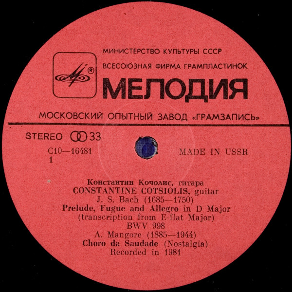 Κώστας Κοτσιώλης – Constantine Cotsiolis (Greece) (LP, Album, RP)