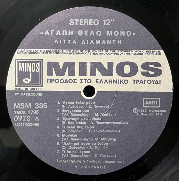 Λίτσα Διαμάντη – Αγάπη Θέλω Μόνο (LP, Album)
