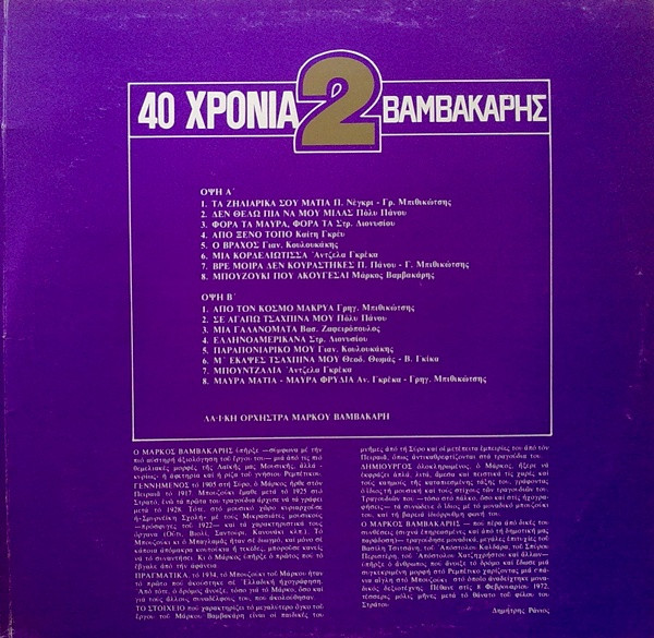 Μάρκος Βαμβακάρης – 40 Χρόνια Βαμβακάρης Νο 2 (2xLP, Comp)