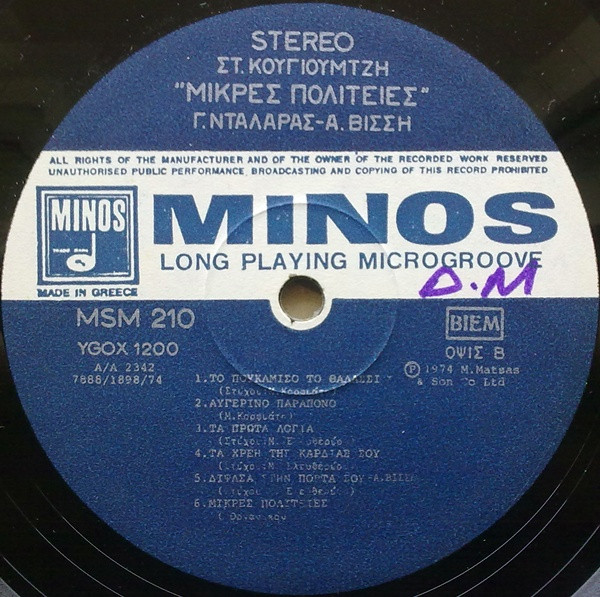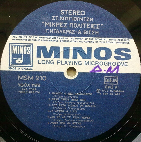 Σταύρος Κουγιουμτζής – Γιώργος Νταλάρας – Anna Vissi – Μικρές Πολιτείες (LP, Album, Gat)