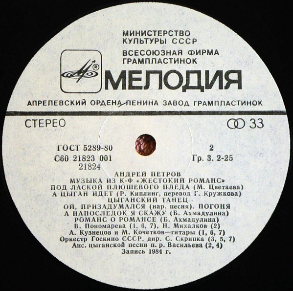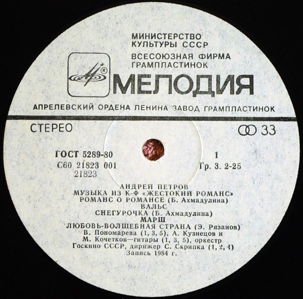 Андрей Петров – Музыка Из К/Ф «Жестокий Романс» (LP, Album, Whi)