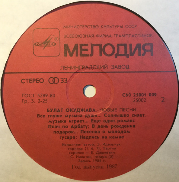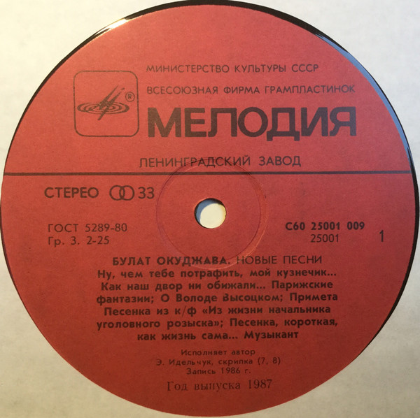 Булат Окуджава – Новые Песни (LP, Album, ЛЗГ)