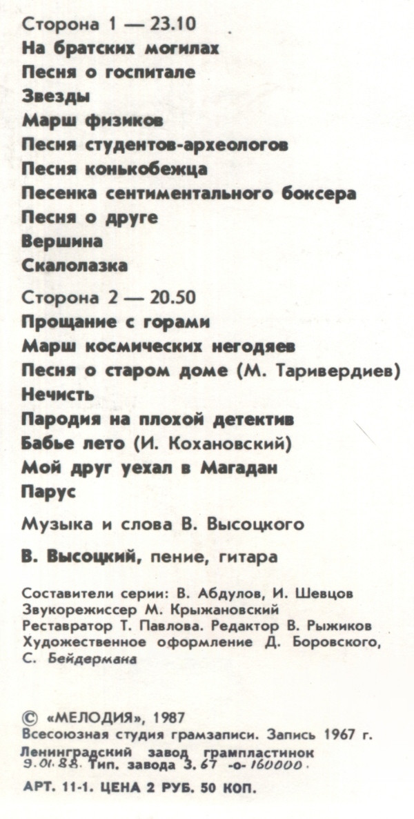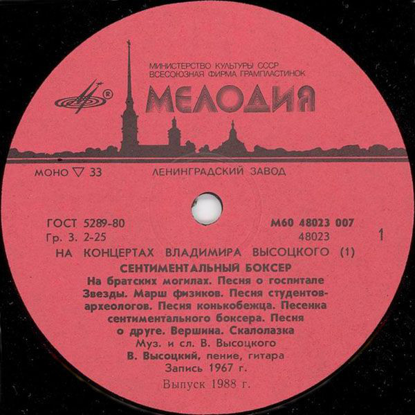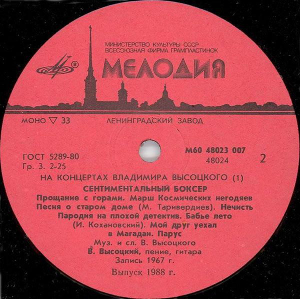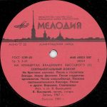 Владимир Высоцкий – Сентиментальный Боксёр (LP, Album, Mono, RP)