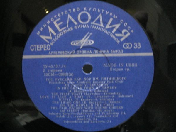 Государственный Академический Русский Народный Хор Им. М. Е. Пятницкого – Russian Folk Songs (LP, Album)