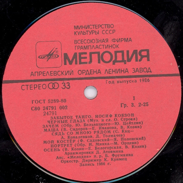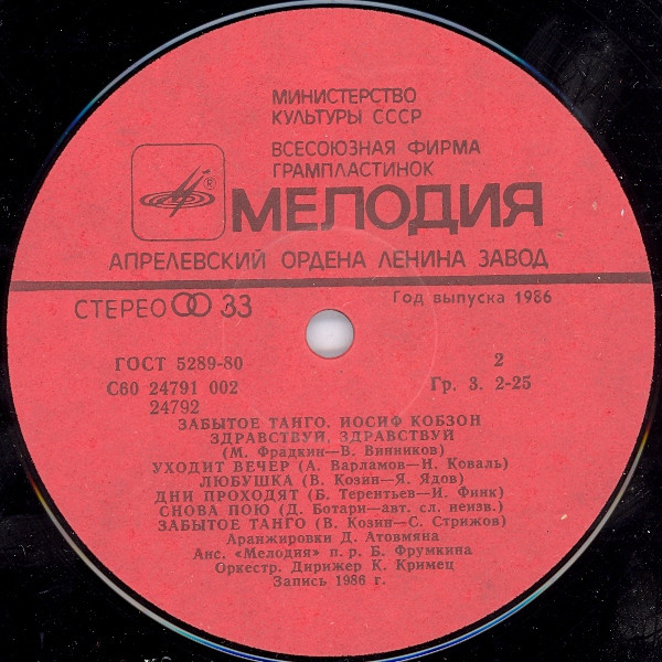 Иосиф Кобзон – Забытое Танго (LP, Album, АЗГ)