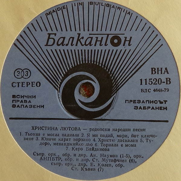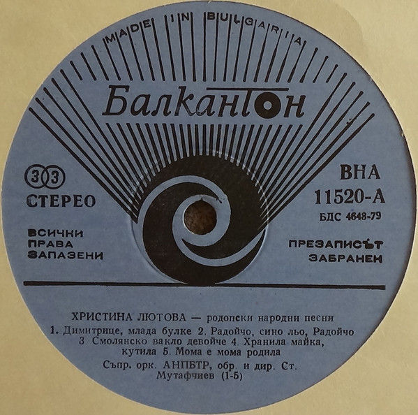 Христина Лютова – Родопски Народни Песни / Folk Songs From The Rodopes (LP, Album)