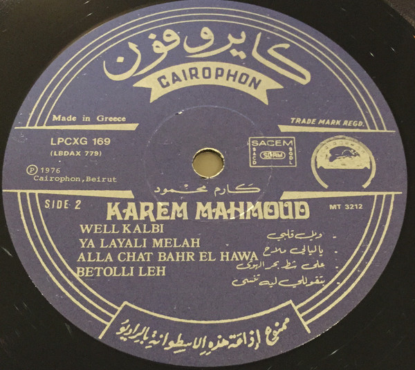 كارم محمود = Karem Mahmoud* – الأغاني الشعبية = Chants Populaires (LP, Comp)