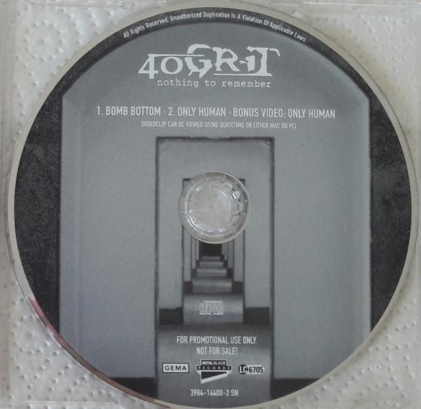 40 Grit – Nothing To Remember (CD, Single, Promo, Dj )