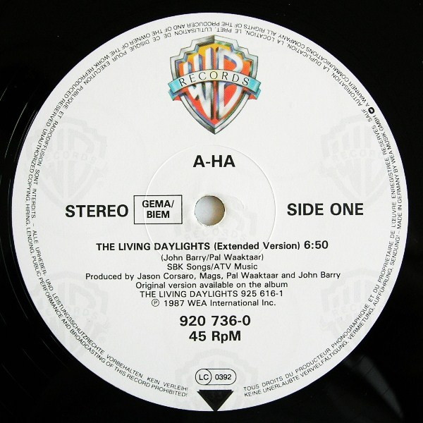 a-ha – The Living Daylights (Extended Mix) (12″, Maxi)