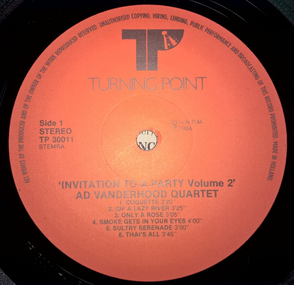 Ad Vanderhood Quartet ”Touch Of Swing”* – Invitation To A Party 2 (LP, Album)