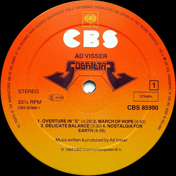 Ad Visser – Sobriëtas (LP, Album, Gat)