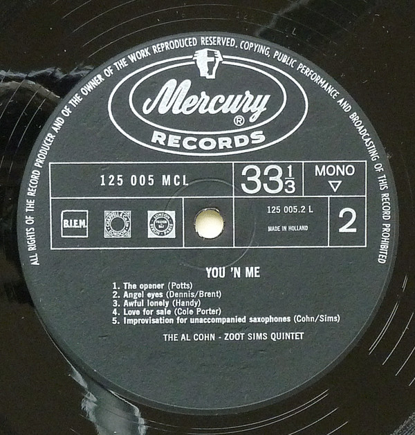 Al Cohn – Zoot Sims Quintet – You ‘N Me (LP, Album, Mono)