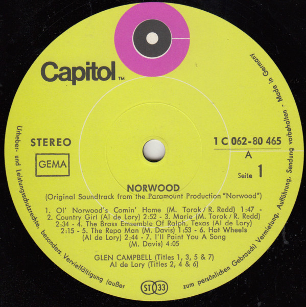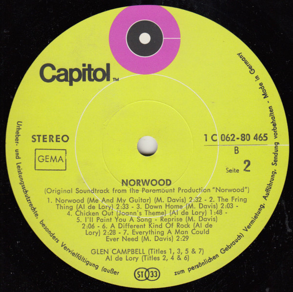 Al De Lory, Glen Campbell – Norwood – Original Motion Picture Soundtrack (LP, Album)
