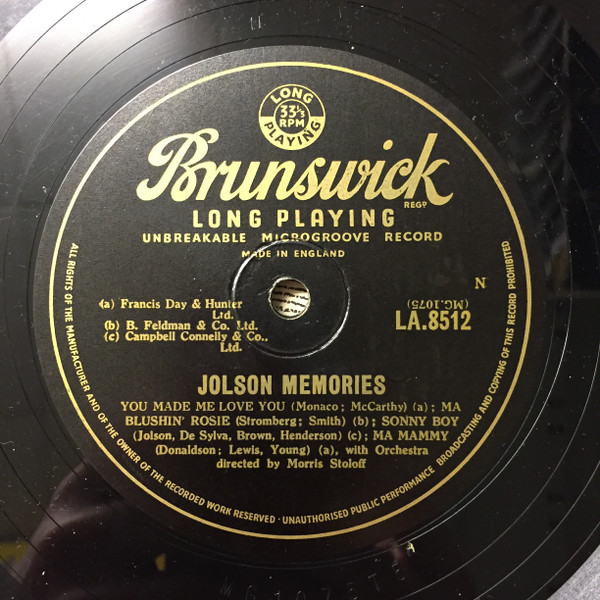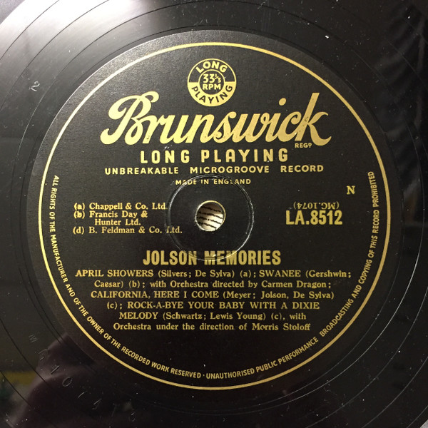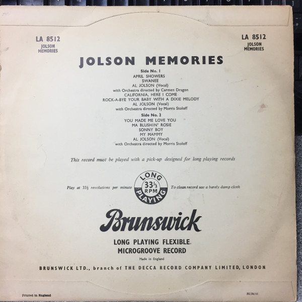 Al Jolson – Jolson Memories (10″, Album, M/Print)