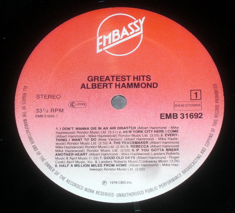 Albert Hammond – Greatest Hits (LP, Comp)