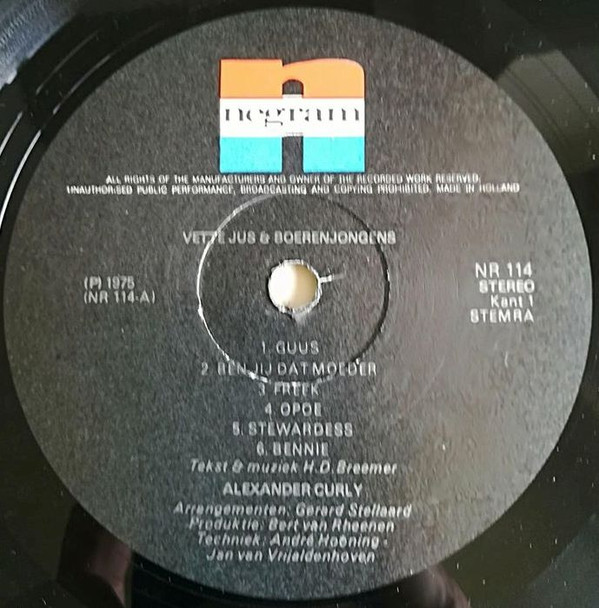 Alexander Curly – Vette Jus & Boerenjongens (LP, Album)