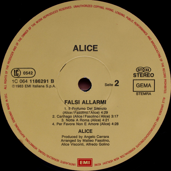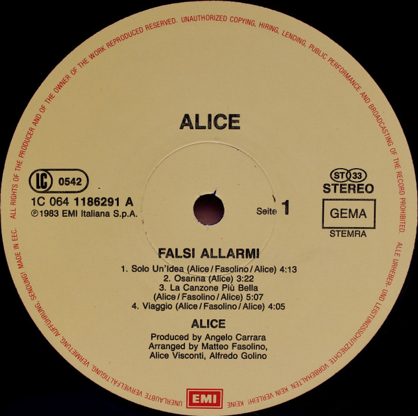 Alice (4) – Falsi Allarmi (LP, Album)