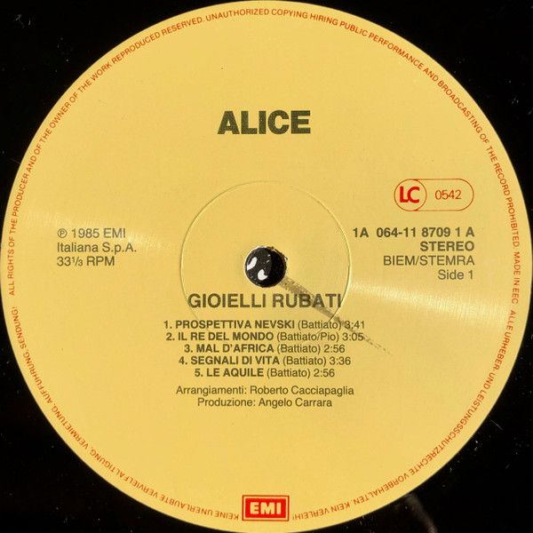 Alice (4) – Gioielli Rubati (LP, Album)