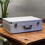 Tweedehands aluminium CD koffer voor het archiveren of vervoeren van ca. 130 CD’s.