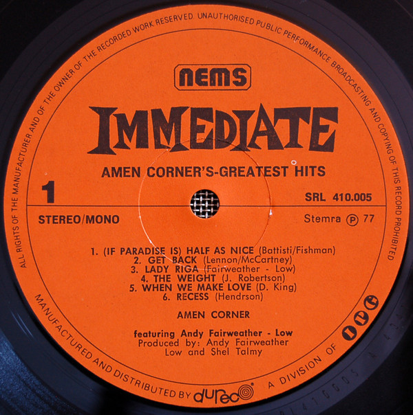 Amen Corner Featuring Andy Fairweather-Low – Greatest Hits (LP, Comp)