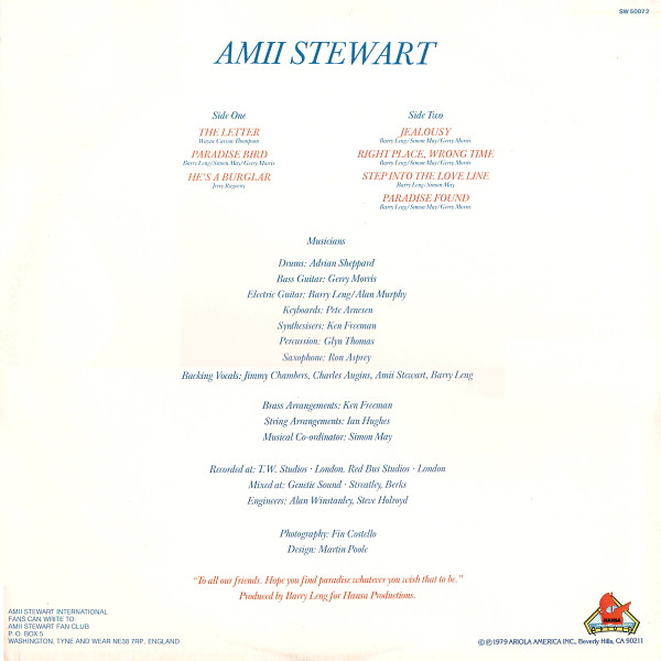Amii Stewart – Paradise Bird (LP, Album, Ter)