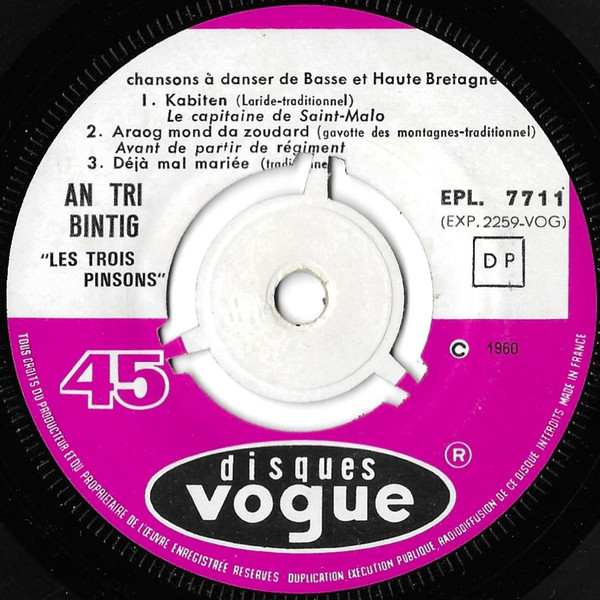 An Tri Bintig – Chansons A Danser De Basse Et Haute Bretagne (7″, EP)