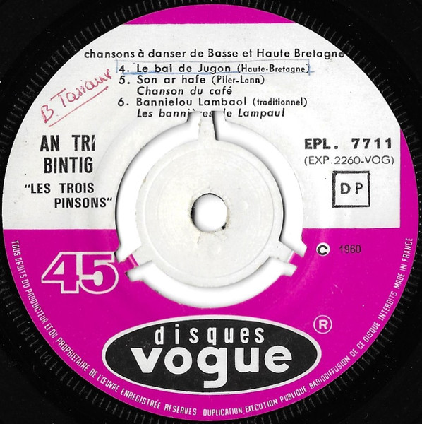 An Tri Bintig – Chansons A Danser De Basse Et Haute Bretagne (7″, EP)