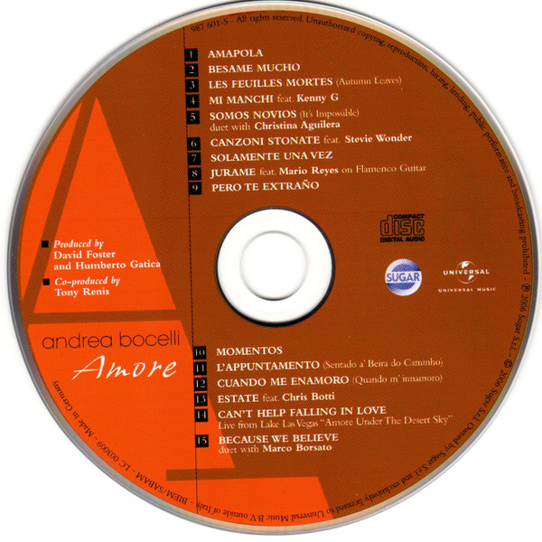Andrea Bocelli – Amore (CD, Album, Sup)