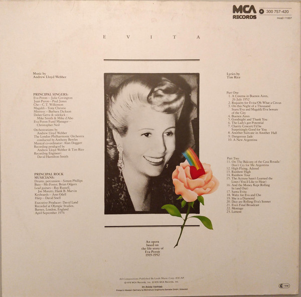 Andrew Lloyd Webber, Tim Rice – Evita (2xLP, Album, RE, Gat)