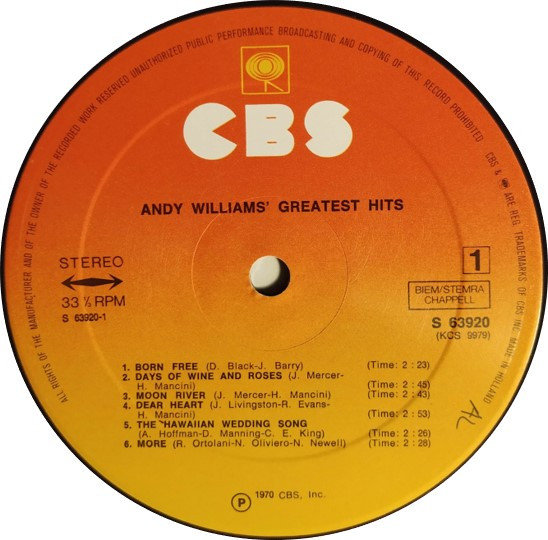 Andy Williams – Andy Williams’ Greatest Hits (LP, Comp, RE, Gat)