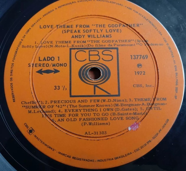 Andy Williams – Love Theme From “The Godfather” (LP, Album)