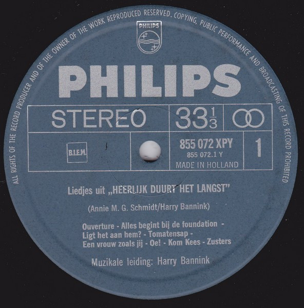 Annie M.G. Schmidt, Harry Bannink, Conny Stuart, Leen Jongewaard, André Van Den Heuvel – Liedjes Uit “Heerlijk Duurt Het Langst” (LP, RP)