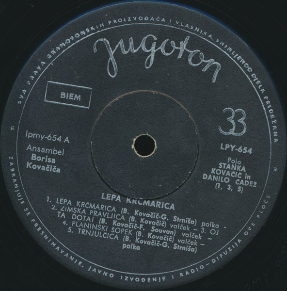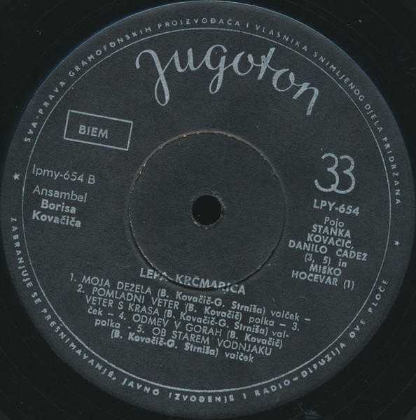 Ansambel Borisa Kovačiča – Lepa Krčmarica (10″, Album)