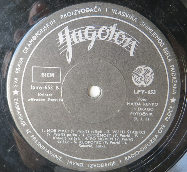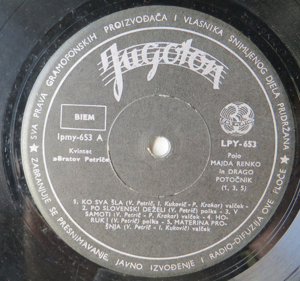 Ansambel Vilija Petriča – Kvintet “Bratov Petrič” (10″, Album)