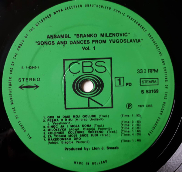 Ansambl Branka Milenovića – Songs And Dances From Yugoslavia (LP)